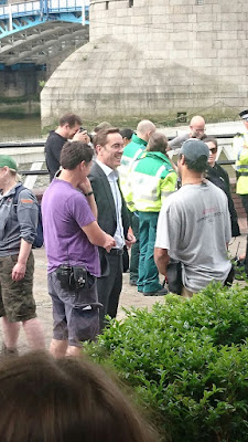 Sunnuntaiaamuna jätimme tavarat hotellin säilytykseen ja lähdimme ostoksille. Hotellin pihalla törmäsimme lempibrittinäyttelijäämme. James Nesbitt, Rimakauhua ja rakkautta sekä Monroe sarjoissa näytellyt herra kuvasi uutta TV sarjaa joen rannassa.